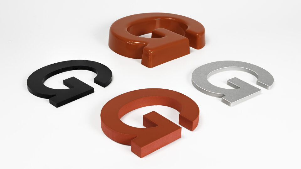 Each kit includes four dimensional letter samples, all featuring the letter “G” in Helvetica, so your customers can easily compare materials and finishes.